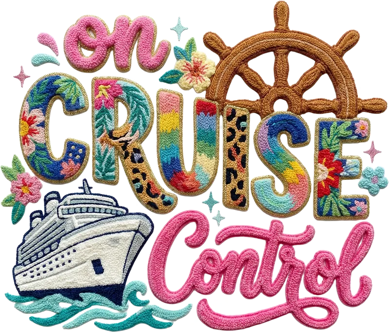 See allSet sail in style with our 'On Cruise Control' DTF transfer, an eye-catching design perfect for your next getaway. This ready to press design features an intricate, embroidery-inspired texture, showcasing a detailed cruise ship, a classic ship's wheel, lush tropical flowers, and chic leopard print accents. Its vibrant colors and playful feel capture the carefree spirit of vacation, making it an ideal statement piece for any travel enthusiast. This tropical apparel transfer is designed for all cruise enthusiasts, globetrotters, and those planning a well-deserved escape. It’s perfect for family cruise trips, girls' getaways, honeymoons, or simply celebrating summer vacation. Imagine matching shirts for your travel crew or a personalized tote bag for your beach essentials. It also makes a fantastic gift for friends and family who love to travel or are embarking on a special journey. Applying this high-quality heat press transfer is a breeze on a wide range of materials, including cotton, polyester, and their blends. For best results, use a heat press at 300-325°F for 15 seconds with medium pressure. Even a household iron can be used for easy application, transforming your garments with professional results. Unlike traditional vinyl transfer, there's no weeding or layering required, saving you time and effort. Our DTF transfers boast exceptional quality, delivering vibrant, crisp colors and a soft hand feel that will stand the test of time. Crafted from professional-grade DTF film with a strong adhesive, these t-shirt transfers are crack-resistant and durable, ensuring your personalized garments look great wash after wash. Elevate your wardrobe with this unique and durable heat press design.