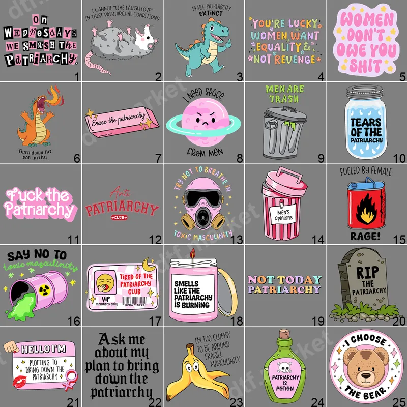 See allMake a bold and empowering statement with our "On Wednesdays We Smash The Patriarchy" DTF transfer. This vibrant design features playful, mixed typography, instantly recognizable for its witty reference to popular culture. It's a powerful visual declaration, perfect for anyone ready to challenge norms. This premium DTF transfer is meticulously crafted, ensuring a flawless and ready to press application onto your chosen garment. This unique design is ideal for feminists, activists, and anyone who stands for gender equality and social justice. Whether you're attending a rally, making a statement in everyday wear, or looking for a meaningful gift for a like-minded friend, this design speaks volumes. It’s perfect for adding a touch of sassy attitude to your wardrobe and expressing your convictions with style. Our heat press ready design is incredibly versatile, adhering beautifully to a wide range of materials including cotton, polyester, and their blends. Application is a breeze: simply use a heat press at 300-325°F for 15 seconds with medium pressure, or even a household iron for smaller designs. There’s no complex weeding required, making this iron on transfer quick and easy to apply. Experience the superior quality of our direct to film transfers. Each heat press design boasts incredibly vibrant colors and sharp details that won't crack, peel, or fade, even after multiple washes. The professional-grade DTF film ensures a soft, smooth feel on your apparel, providing a durable and long-lasting finished product that looks professionally made.