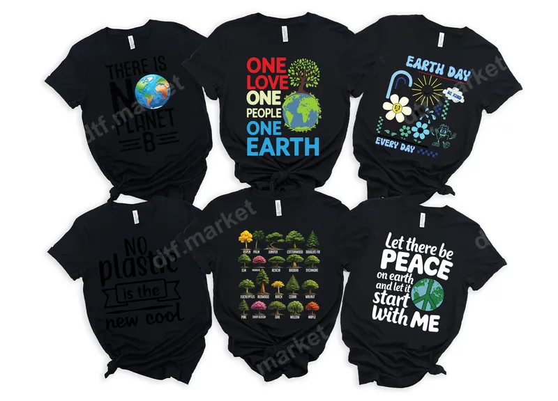 See allThis impactful "One Love One People One Earth" DTF transfer beautifully combines a powerful message of global unity and environmental care with a striking design. Featuring a stylized globe from which a vibrant green tree grows, surrounded by the inspiring multi-colored text, this ready to press design is perfect for anyone passionate about our planet. As a high-quality direct to film transfer, it’s designed for easy application and stunning results. Ideal for eco-conscious individuals, environmental advocates, and those who champion peace and unity, this versatile heat transfer makes a thoughtful gift. Celebrate Earth Day, participate in climate rallies, or simply express your love for the planet with this meaningful apparel transfer. It’s also a great choice for teachers, students, or anyone looking to spread a positive, unifying message through their wardrobe. Applying this durable heat press transfer is a breeze. Compatible with cotton, polyester, and most fabric blends, simply use a heat press at 300-325°F for 15 seconds with medium pressure. For home users, a household iron can also be used following specific instructions. The beauty of this iron on transfer is that there's absolutely no weeding required, saving you time and effort to create professional-looking custom garments instantly. Crafted using premium DTF film and strong adhesive, our designs ensure exceptional durability and a soft hand feel. The vibrant colors are crack-resistant and machine washable, maintaining their integrity through countless wears and washes. Get a professional-grade shirt design that stands out and spreads an important message with every wear.
