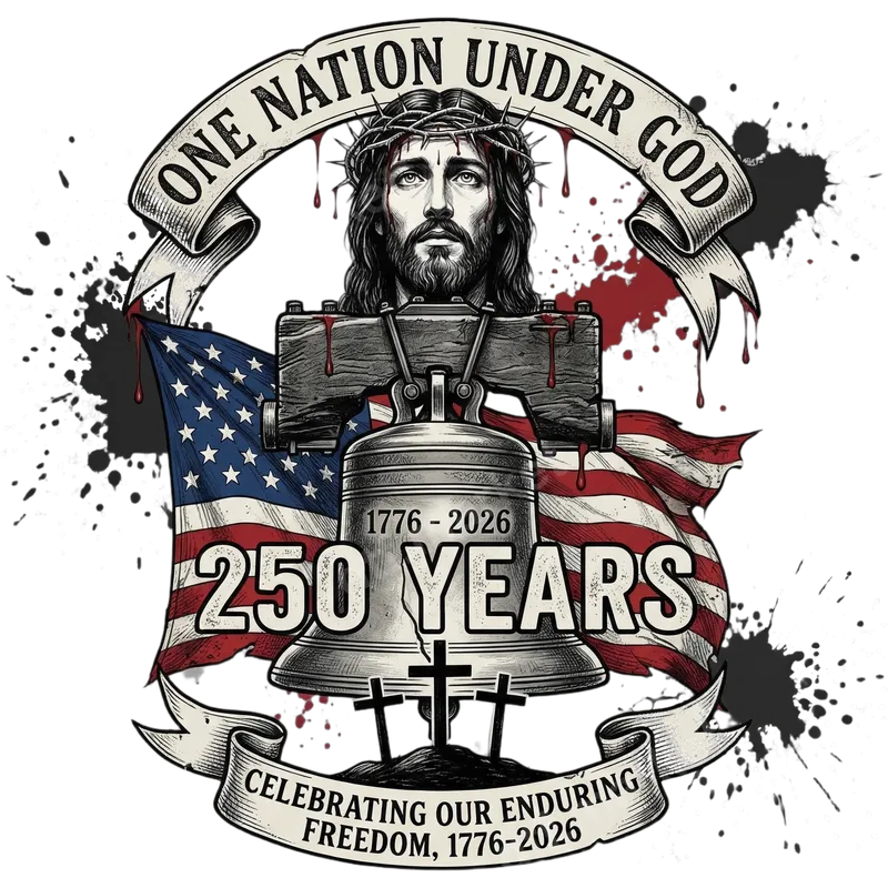 One Nation Under God 250 Years DTF Transfer | Patriotic Jesus & Liberty Bell