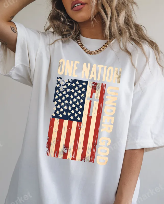 See allEmbrace your patriotism and faith with our 'One Nation Under God' distressed American flag DTF transfer. This powerful design features a rugged, vintage-style U.S. flag with a Christian cross subtly integrated into its stripes, all complemented by the bold, distressed text "ONE NATION UNDER GOD." It's a ready to press design that captures a spirit of national pride rooted in spiritual belief, perfect for creating meaningful apparel. This inspiring heat transfer is ideal for anyone who cherishes both their country and their faith. It's a perfect choice for patriotic holidays like the 4th of July, Memorial Day, or Veterans Day, as well as for everyday wear to express your convictions. It makes a thoughtful gift for veterans, service members, church groups, or any proud American who walks by faith. Applying this durable iron on transfer is simple, requiring no weeding. It adheres beautifully to a wide range of fabrics, including 100% cotton, 100% polyester, and cotton/poly blends. For best results, use a heat press at 300-325°F for 15 seconds with medium pressure, followed by a cold peel. A household iron can also be used with careful application. Crafted using professional-grade DTF film and vibrant, crack-resistant inks, this t-shirt transfer ensures a soft-to-touch finish that stands up to countless washes. Your apparel will not only look great but also convey a message of unwavering faith and national pride with a high-quality, long-lasting apparel transfer.