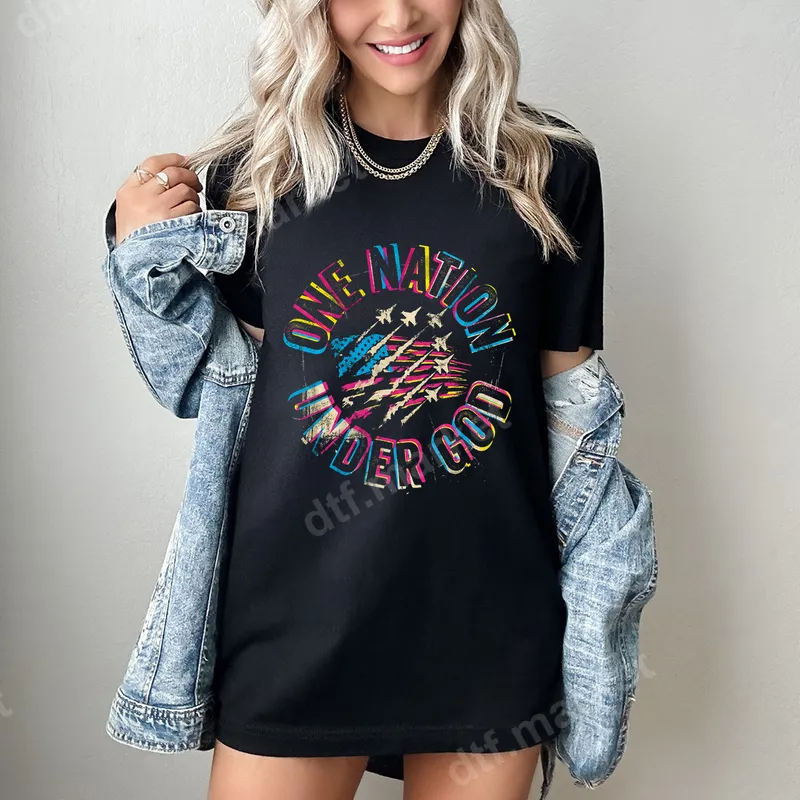 One Nation Under God DTF Transfer | Patriotic American Flag & Jets