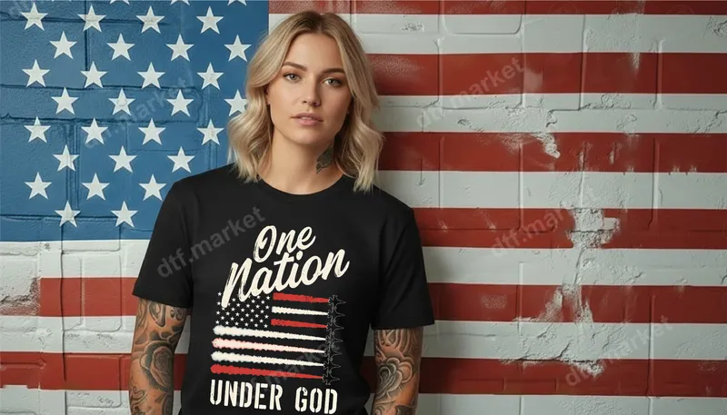 See allExpress your unwavering faith and patriotism with our 'One Nation UNDER GOD' DTF transfer. This powerful design features bold typography alongside a stylized American flag, incorporating elements that evoke a sense of national pride and reverence. Some stripes even subtly suggest fighter jet contrails, adding a unique, dynamic touch to this deeply meaningful graphic. This ready to press transfer is perfect for creating apparel that speaks volumes about your beliefs and love for country. This patriotic iron on decal is ideal for anyone who cherishes both their American heritage and Christian faith. It's a fantastic choice for patriotic holidays like the 4th of July, Memorial Day, or Veterans Day. Use it to create thoughtful gifts for veterans, military families, church members, or anyone passionate about faith and freedom. Whether for personal wear or group events, this design embodies a strong, unifying message. Our direct to film transfer is incredibly versatile, applying seamlessly to a wide range of materials including cotton, polyester, and various fabric blends. Achieve professional results using a heat press set between 300-325°F for 15 seconds with medium pressure. For those without a professional heat press, a household iron can also be used with careful application. Enjoy the convenience of a heat press ready design that requires no weeding, saving you time and effort. Experience premium quality with every heat transfer. Our DTF transfers are known for their vibrant colors that truly pop, exceptional crack resistance, and a soft, comfortable feel on any garment. Each transfer is produced using professional-grade DTF film and strong adhesive, ensuring a durable finish that withstands countless washes. Create lasting apparel with these high-quality, long-lasting apparel transfers.