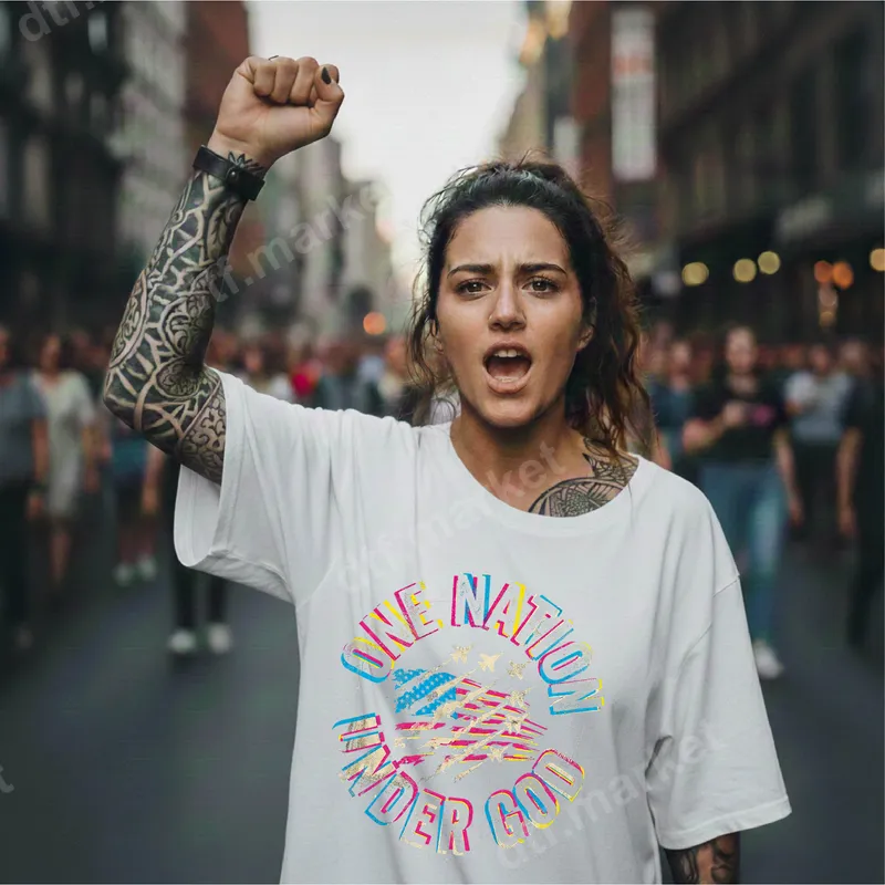 See allThis eye-catching DTF transfer features a powerful "One Nation Under God" message, encircled around a vibrant, distressed American flag graphic. The design boasts a modern, edgy aesthetic with its neon-inspired colors and grunge texture, making a bold statement. It's a high-quality, ready to press design that combines deep faith with patriotic pride, perfect for expressing your values. This patriotic DTF transfer is ideal for individuals who want to display their American pride and spiritual beliefs. It’s perfect for national holidays like the 4th of July, Memorial Day, or Veterans Day, as well as political rallies, church events, or everyday wear. This versatile heat transfer makes an excellent gift for veterans, service members, devout Christians, or anyone passionate about their country and faith. Applying this direct to film transfer is effortless, suitable for cotton, polyester, and cotton/poly blends. For professional results, use a heat press at 300-325°F for 15 seconds with medium pressure. It can also be applied with a household iron for smaller projects. Forget tedious weeding; this heat press design comes ready for immediate application, saving you time and effort. Experience superior quality with this durable apparel transfer. Our DTF transfers are known for their vibrant, true-to-color reproduction that resists cracking and fading, ensuring your garment looks great wash after wash. The professional DTF film provides a soft, flexible feel that seamlessly integrates with your fabric, offering comfortable wear and strong, lasting adhesion.