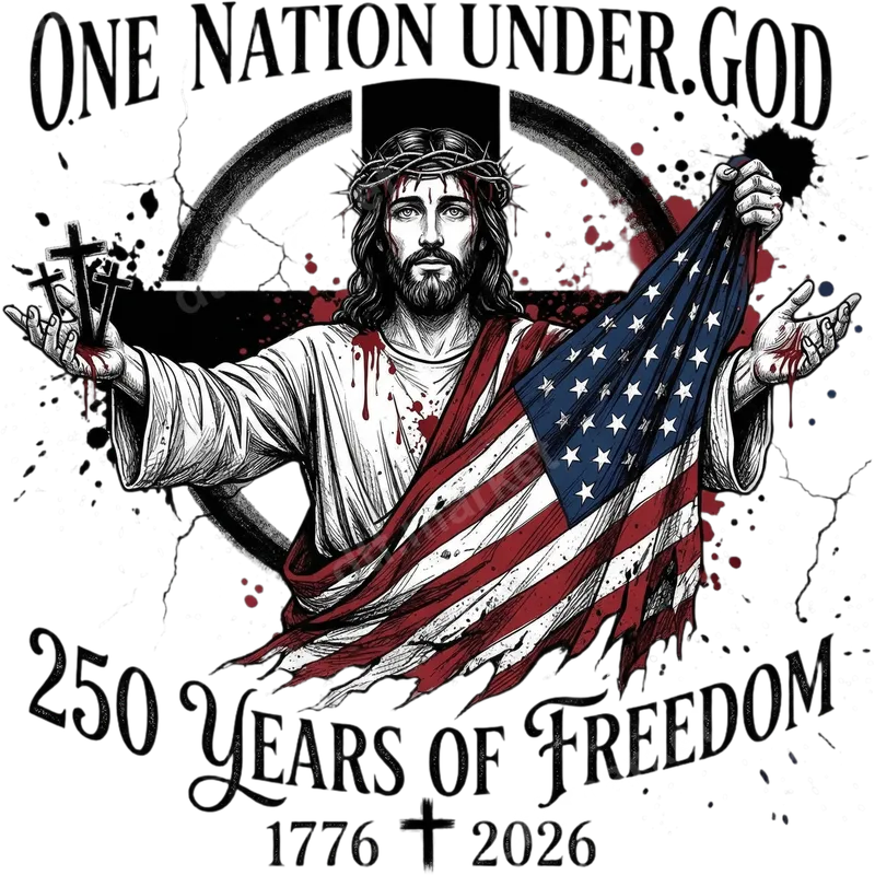 One Nation Under God Jesus American Flag DTF Transfer 250 Years Freedom