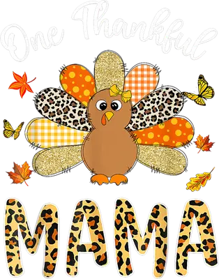 One Thankful Mama Turkey DTF Transfer - Leopard Print Fall Design