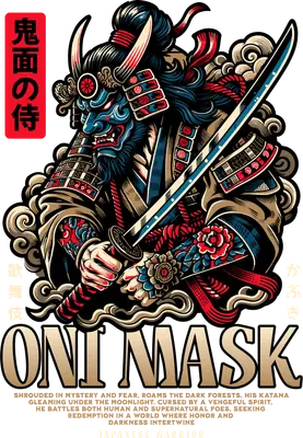 Oni Mask Japanese Warrior DTF Transfer - Samurai Katana Design