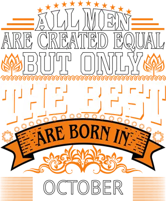 See allShow off October pride with this bold "All Men Are Created Equal But Only The Best Are Born In October" DTF transfer. This design features strong, outlined and solid typography in white and orange, accented with stars, decorative scrolls, and a prominent banner. It’s a perfect statement piece for any man who celebrates his autumn birthday with confidence and a touch of humor, offering a high-quality, ready to press solution for custom apparel. This vibrant design is perfect for men celebrating their October birthdays, whether it's for a personal shirt, a party outfit, or a thoughtful gift. It’s an ideal iron on transfer for wives, partners, or family members looking for a unique present for their October-born loved one. Small custom apparel businesses and Etsy sellers can easily offer personalized birthday gifts using this eye-catching heat transfer design, appealing to a broad audience who appreciate birth month pride and a touch of playful bravado. Applying this heat press transfer is incredibly easy, making it suitable for both experienced crafters and beginners. It works seamlessly on a wide range of materials including cotton, polyester, cotton-poly blends, and even nylon. For best results, use a heat press at 300-325°F for 15 seconds with medium pressure, or apply with a household iron. There's no weeding required—simply peel and press! Create stunning custom t-shirts, cozy hoodies, practical tote bags, durable denim jackets, or personalized aprons. For long-lasting vibrancy, wash garments inside out and tumble dry on low. Experience exceptional quality with every ready to press transfer. This design boasts vibrant, full-color printing with crisp details and rich orange and white tones that truly pop. Our transfers are crack-resistant and offer a soft, smooth feel on fabric, avoiding the heavy texture often associated with vinyl. Each direct to film transfer is printed on premium DTF film with a strong adhesive backing, ensuring professional-grade results and durability for all your apparel projects.