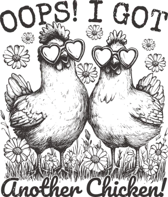 Oops I Got Another Chicken DTF Transfer | Funny Hens with Heart Glasses