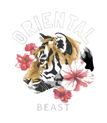 Oriental Beast Tiger & Hibiscus Floral DTF Transfer