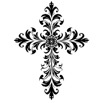 Ornate Filigree Cross DTF Transfer | Elegant Christian Faith Design