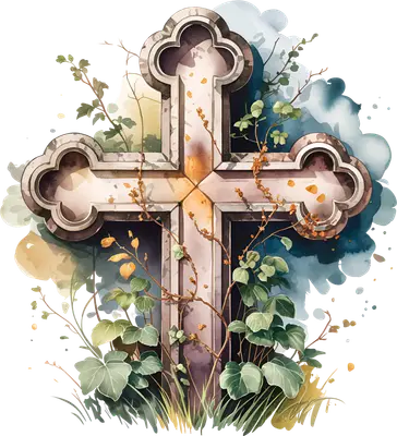 Ornate Stone Cross & Vines Ready to Press DTF Transfer