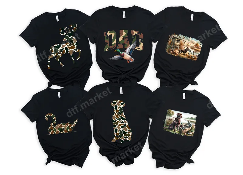 Outdoor Hunter DTF Transfers: Camo Dad, Duck, Dog Ready to Press