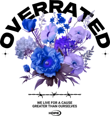 Make a statement with our 'Overrated' floral **DTF transfer**, a captivating design blending vibrant blue and purple botanicals with bold typography and edgy barbed wire. This unique graphic features the word "OVERRATED" arched above a lush bouquet of flowers, complemented by the profound message "WE LIVE FOR A CAUSE GREATER THAN OURSELVES" and a subtle 'HOPE' emblem. It's a striking **ready to press** design that speaks to deeper meaning beyond superficial judgments, perfect for those who embrace thoughtful self-expression. This distinct **iron on transfer** is ideal for streetwear enthusiasts, indie fashion lovers, and anyone who appreciates a design with both aesthetic beauty and a philosophical edge. Perfect for gifting to friends who march to their own beat, or for small apparel businesses and crafters seeking unique **heat transfer design** inventory. It's a versatile choice for everyday wear, adding a touch of rebellious elegance to any wardrobe and inspiring conversations about purpose and perspective. Applying this **heat press transfer** is quick and easy, transforming your garments with professional results. Designed for durability, it adheres seamlessly to cotton, polyester, cotton-poly blends, and even nylon. Simply use a heat press at 300-325°F for 15 seconds with medium pressure, or apply with a household iron. Forget tedious weeding; this **custom t-shirt transfer** is ready to peel and press. It’s perfect for creating custom t-shirts, hoodies, sweatshirts, tote bags, denim jackets, and more. For long-lasting wear, wash inside out and tumble dry low. Experience exceptional quality with this **ready to press transfer**, boasting vibrant, full-color printing and intricate details that truly stand out. The design is crack-resistant and offers a soft, lightweight feel without the bulk of traditional vinyl. Each **direct to film transfer** is meticulously printed on premium DTF film, ensuring a strong adhesive backing for superior adhesion and professional-grade application on all your custom apparel projects.