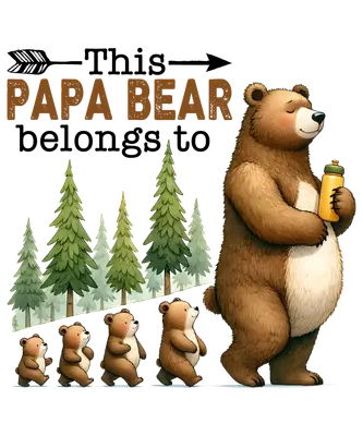 See allCelebrate fatherhood with our heartwarming Papa Bear & Cubs DTF transfer, featuring a proud Papa Bear leading his four adorable cubs through a serene forest of pine trees. The charming watercolor style and 'This PAPA BEAR belongs to' text evoke a sense of warmth, family, and adventure. This ready to press design is perfect for creating personalized apparel that truly speaks from the heart, ideal for any proud father. This delightful design is perfect for proud dads, grandfathers, or any father figure who cherishes his little ones. It makes an exceptional gift for Father's Day, birthdays, Christmas, or even a new dad celebration. Small t-shirt businesses and Etsy sellers looking to offer unique, personalized family apparel will find this iron on transfer a popular choice. Use this sweet heat transfer design to create matching family outfits for vacations, reunions, or everyday wear to show off that special bond. Applying this heat press transfer is simple and efficient. It works beautifully on a wide range of materials, including cotton, polyester, cotton-poly blends, and even nylon. For best results, use a heat press at 300-325°F for 15 seconds with medium pressure, or follow instructions for a household iron. There’s no weeding needed – just peel, press, and admire! It’s perfect for custom t-shirts, cozy hoodies, sweatshirts, versatile tote bags, and even personalized baby onesies, aprons, or denim jackets. Experience superior quality with this ready to press transfer. It boasts vibrant, full-color printing that captures every fine detail of the artwork, ensuring your finished product looks professional and eye-catching. Our DTF transfers are crack-resistant and feature a soft, lightweight feel, avoiding the heavy texture often associated with vinyl. Each direct to film transfer is printed on premium DTF film with a robust adhesive backing, guaranteeing a durable and long-lasting application for professional results every time.