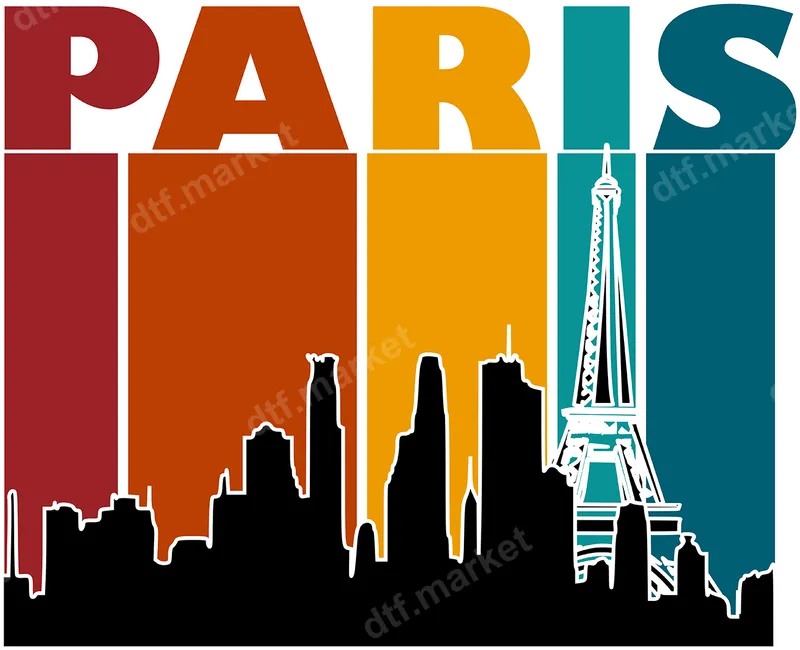 See allThis vibrant graphic DTF transfer brings the iconic cityscape of Paris to life with a modern, retro-inspired aesthetic. Featuring the word 'PARIS' in bold, colorful block letters, each letter is set against a corresponding vertical color block in a rich palette of maroon, orange, gold, and teal. Below, a striking black skyline silhouette is topped by a finely detailed white outline of the Eiffel Tower, making this design a captivating ready to press artwork. Perfect for travel enthusiasts, Francophiles, and anyone with a love for European chic, this versatile heat transfer is ideal for creating custom apparel. Whether you're commemorating a trip, showing off your wanderlust, or simply adding a touch of Parisian flair to your wardrobe, it's a fantastic choice for everyday wear, gift-giving, or as unique souvenirs for friends and family after a European vacation. Applying this professional-grade iron on transfer is simple and efficient. It works seamlessly on a wide variety of fabrics, including cotton, polyester, and their blends, making it suitable for almost any garment. Use a heat press at 300-325°F for 15 seconds with medium pressure, then give a cold peel. No tedious weeding or intricate cutting is required, ensuring a smooth and quick application process for your custom shirt design. Our premium DTF transfers are renowned for their exceptional quality and durability. Expect vivid colors that pop, a soft-to-the-touch finish, and superior crack resistance, ensuring your design looks fresh and vibrant even after numerous washes. Each apparel transfer is crafted using high-quality DTF film and strong adhesive, providing a long-lasting and professional result that will stand the test of time.