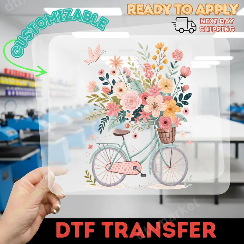 See allCapture the essence of a serene spring day with our enchanting Pastel Floral Bicycle DTF Transfer. This exquisite design features a vintage-style bicycle in soft mint green and pink, with its basket overflowing with a charming bouquet of pastel roses, daisies, and wildflowers. A delicate butterfly flutters nearby, adding a touch of whimsical beauty. This ready to press design brings a fresh, feminine, and cheerful vibe perfect for brightening any garment. This beautiful heat press design is ideal for women, DIY crafters, small business owners, and anyone who loves gardening or a touch of nostalgic charm. It makes a thoughtful iron on transfer gift for Mother's Day, birthdays, or just to show appreciation for a friend or family member. Create custom apparel for garden club events, casual outings, or simply add a unique touch to your everyday wardrobe with this delightful motif. Our versatile heat transfer works wonderfully on a wide range of fabric types, including cotton, polyester, and their blends. Application is a breeze; simply use a heat press at 300-325°F for 15 seconds with medium pressure, or apply with a household iron. Best of all, there's no weeding required, making this ready to press transfer incredibly convenient for all your custom projects. Experience the professional quality of our DTF transfers. Each t-shirt transfer boasts vibrant colors that pop, superior crack-resistant durability, and a luxuriously soft hand-feel that integrates seamlessly with your fabric. Crafted using professional-grade DTF film and strong adhesive, this apparel transfer ensures your custom creations look fantastic and last for countless washes.