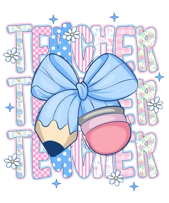 Pastel Floral Teacher DTF Transfer with Bow & Pencil Design