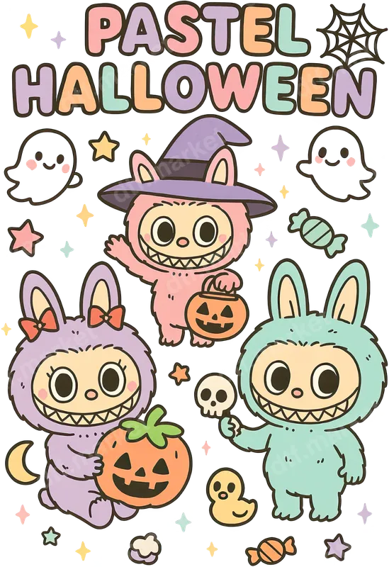 Pastel Halloween Cute Monster Bunnies DTF Transfer