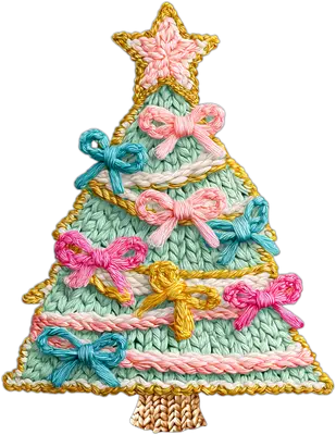 Pastel Knit Christmas Tree DTF Transfer for Apparel