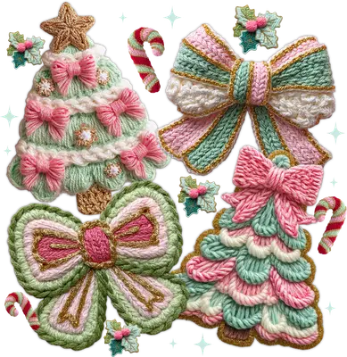 Pastel Knitted Christmas Trees Bows DTF Transfer