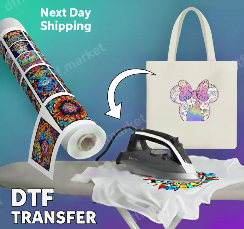 See allThis vibrant DTF transfer features an enchanting Minnie Mouse head silhouette, beautifully adorned with a magical pastel castle, delicate fireworks, and a charming polka dot bow. The design radiates a dreamy, whimsical aesthetic, perfect for adding a touch of fantasy to any item. This high-quality direct to film transfer is ready to press, bringing your creative visions to life with ease and professional results. Ideal for Disney enthusiasts, theme park adventurers, and anyone who loves a touch of magic, this apparel transfer makes a fantastic gift or a personal treat. Use this unique heat press design to personalize matching outfits for family vacations, celebrate birthdays, or create custom pieces for everyday wear. It’s perfect for adding a whimsical flair to children's clothing, adult apparel, and accessories. Applying this iron on transfer is simple, whether you use a professional heat press or a household iron. It adheres perfectly to a wide range of materials, including cotton, polyester, and various blends. For optimal results, use a heat press at 300-325°F for 15 seconds with medium pressure, then cold peel the film. No intricate weeding or layering required, making customization quick and effortless. Our premium DTF transfers boast incredibly vibrant colors that pop and a soft-to-touch finish, ensuring comfort and durability. Each heat transfer is crack-resistant and designed to withstand numerous washes, maintaining its stunning appearance over time. Crafted on professional-grade DTF film with a strong, reliable adhesive, these designs provide a long-lasting, high-quality addition to any garment.