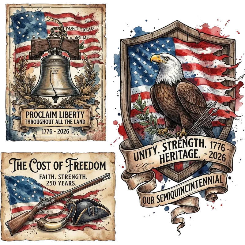 Patriotic 1776-2026 Semiquincentennial DTF Transfer Bundle