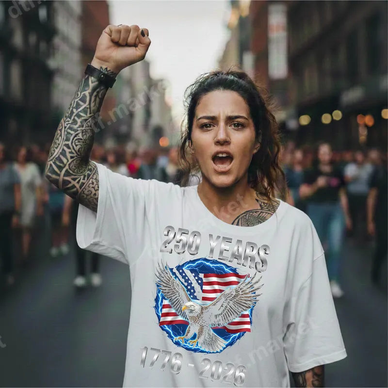 See allCommemorate a significant milestone with this striking 250 Years American Eagle DTF transfer, celebrating the enduring spirit of American independence from 1776 to 2026. This powerful design features a majestic bald eagle, wings outstretched, set against a dynamic circular backdrop of the US flag encircled by electric blue lightning bolts. The bold, metallic silver text '250 YEARS' and '1776-2026' frames the iconic imagery, making it a perfect ready to press statement piece for any patriot. This eye-catching apparel transfer is ideal for history enthusiasts, proud Americans, and anyone looking to express their patriotism. It’s perfect for national holidays like the 4th of July, Memorial Day, or Veterans Day, as well as historical events, political rallies, or simply as a daily display of pride. This makes an exceptional gift for veterans, history teachers, or military families, allowing them to showcase their heritage with a unique shirt design. Our heat press transfer is designed for effortless application on a wide range of fabrics, including 100% cotton, polyester, and various blends. Achieve professional results using a heat press at 300-325°F for 15 seconds with medium pressure, or apply it with a household iron for smaller projects. Enjoy the convenience of no weeding or masking required – just press and peel! Experience superior quality with our vibrant, crack-resistant, and soft-to-the-touch DTF transfers. Crafted using professional-grade DTF film and strong adhesive, these designs ensure exceptional durability and vivid color retention wash after wash. Transform your garments into lasting symbols of freedom and pride with a heat press ready transfer that truly stands out.