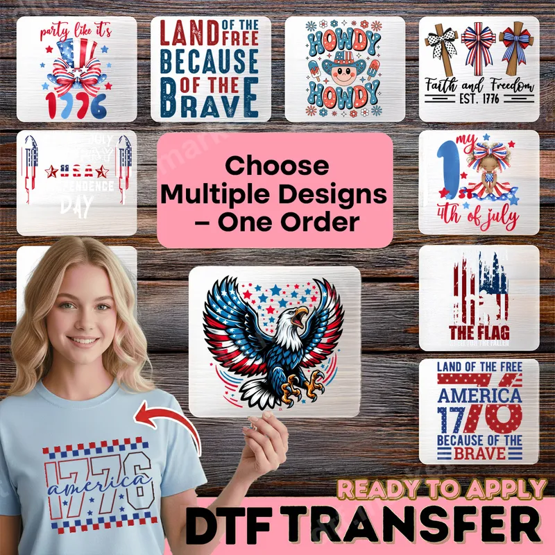 Patriotic 4th of July DTF Transfers | Multiple USA Ready to Press Designs