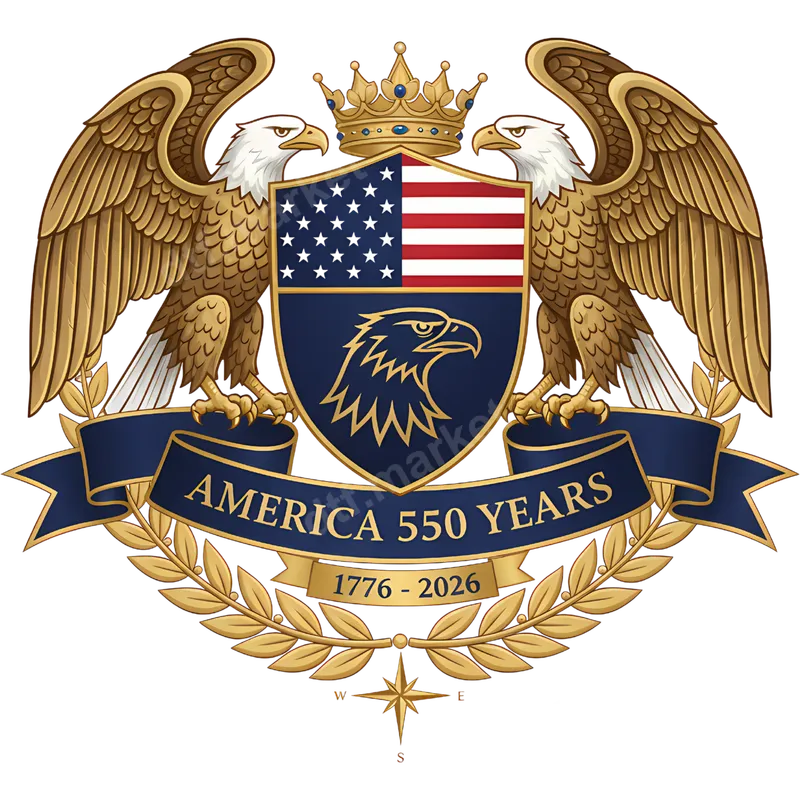 See allThis majestic DTF transfer showcases a regal American emblem, perfect for honoring national pride. Flanked by two powerful bald eagles, a shield proudly displays the U.S. flag at the top and a striking eagle silhouette below, all crowned with a golden royal crown. A banner proclaims "AMERICA 550 YEARS" with the dates "1776 - 2026," set against golden laurel wreaths and a compass rose. This intricate design is a premium, ready to press transfer, ensuring a professional finish. Ideal for anyone who cherishes American history and patriotism, this design makes a powerful statement. It's an excellent choice for national holidays like the Fourth of July, Memorial Day, or Veterans Day. Perfect for history enthusiasts, veterans, or as a meaningful gift, this heat transfer design allows you to personalize apparel and accessories with grandeur. Applying this heat press design is incredibly simple and efficient. It adheres beautifully to a wide variety of materials, including 100% cotton, 100% polyester, and all fabric blends. For best results, use a heat press at 300-325°F for 15 seconds with medium pressure, then peel cold. Great results are also achievable with a household iron. Unlike traditional methods, no weeding is required, making customization quick and hassle-free. Our direct to film transfer technology ensures vibrant colors, exceptional detail, and outstanding durability. The image is crack-resistant, machine-washable, and soft to the touch, providing a comfortable feel on any garment. Each t-shirt transfer is printed on professional-grade DTF film with a strong, long-lasting adhesive, guaranteeing your design will stand the test of time.