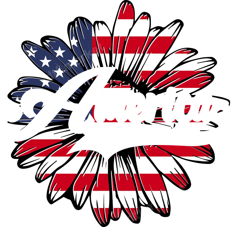 See allThis eye-catching design features a beautiful daisy flower stylized with the American flag pattern, complete with stars and stripes. Boldly overlaid in a flowing script font, the word "America" stands out. This vibrant graphic is a high-quality DTF transfer, perfect for a striking, ready to press design to personalize apparel or accessories. Ideal for national holidays like the 4th of July, Memorial Day, or Veterans Day, this design suits proud patriots, military families, or anyone who loves their country. It makes a thoughtful gift for friends and family, or an excellent addition to your wardrobe for parades, picnics, or everyday wear. Create custom gifts that showcase American pride. Applying this direct to film transfer is incredibly easy, perfect for both crafters and beginners. Our durable heat transfers adhere beautifully to cotton, polyester, and blends. For best results, use a heat press at 300-325°F for 15 seconds with medium pressure, then peel cold. A household iron can also be used with firm, even pressure. Enjoy a ready to press transfer with no tedious weeding. Experience superior quality with our professional-grade DTF transfers. Each iron on transfer is printed with vibrant, long-lasting colors that resist cracking and fading, ensuring your custom creation looks fantastic wash after wash. The specialized DTF film provides a soft hand feel and exceptional stretch for comfortable wear. Our strong adhesive ensures a secure bond to your garment, creating a durable shirt design you'll be proud to wear.