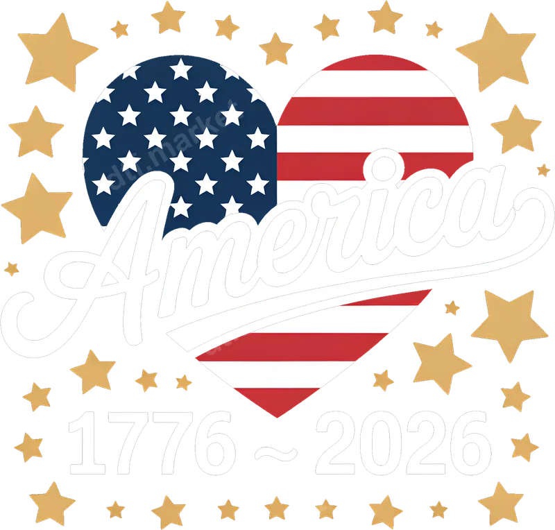 See allThis vibrant America Heart Flag DTF transfer is a perfect way to showcase your national pride. Featuring a classic American flag design within a heart, adorned with shimmering gold stars and the bold script 'America', along with the significant dates '1776 ~ 2026', this ready to press design is ideal for celebrating historical milestones and everyday patriotism. The iconic imagery makes this a timeless piece for any wardrobe, providing a striking visual that honors the nation's history and future. Experience rich colors and sharp details with this premium direct to film transfer. This versatile patriotic design is perfect for anyone looking to celebrate their American heritage or commemorate significant national anniversaries like the upcoming 250th in 2026. It makes an excellent heat transfer for personalized gifts, crafting unique apparel for Independence Day, Memorial Day, Veterans Day, or any patriotic gathering. Both individuals and small businesses creating custom t-shirt transfers will find this design easy to use and widely appealing for customers or personal use. Applying your new design is simple and effective. Our heat press transfer works beautifully on a wide range of materials, including cotton, polyester, and various fabric blends. For best results, use a heat press at 300-325°F for 15 seconds with medium pressure, then perform a cool peel. For home users, this can also be an iron on transfer by using firm, even pressure. There's no need for tedious weeding, saving you time and effort to create stunning garments instantly. Crafted with professional-grade DTF film, this transfer ensures exceptional quality. The vibrant colors are designed to resist cracking, peeling, and fading, maintaining their brilliance wash after wash. The design boasts a soft, lightweight feel once applied, seamlessly integrating with the fabric for maximum comfort. Provide your customers or yourself with durable, high-quality apparel that stands out.