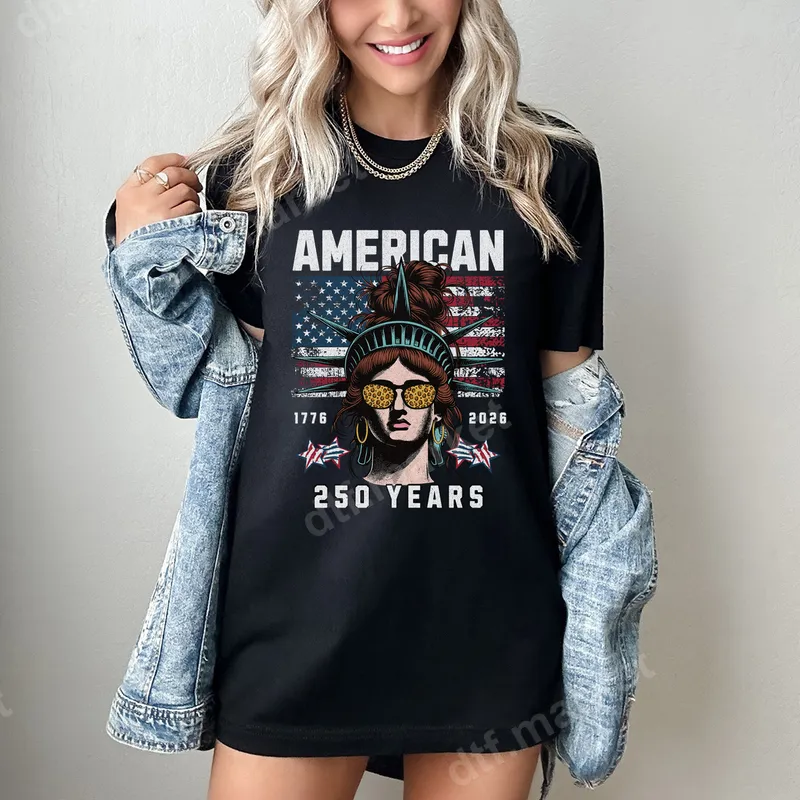 See allShowcase your American pride with our unique 'AMERICAN 250 YEARS' DTF transfer. This vibrant design features a modern, cool Statue of Liberty rocking a messy bun, stylish honeycomb sunglasses, and patriotic hoop earrings, set against a distressed American flag background. Celebrating 250 years from 1776 to 2026, this ready to press transfer captures a blend of historical significance and contemporary style. This versatile heat transfer is ideal for anyone celebrating Independence Day, Memorial Day, or simply expressing their love for the USA year-round. It makes a fantastic gift for patriotic women, veterans, history enthusiasts, or anyone who appreciates a unique twist on American iconography. Elevate your wardrobe for rallies, parades, family gatherings, or just daily wear with this bold statement piece. Applying this professional-grade DTF transfer is effortless. Our heat press ready designs work perfectly on a wide range of fabrics, including cotton, polyester, and blends. Achieve a flawless finish using a heat press at 300-325°F for 15 seconds with medium pressure, or easily apply it with a household iron. This iron on transfer is designed for quick, clean application, making it an ideal t-shirt transfer for DIY projects. Experience superior quality with our durable direct to film transfer. Each design boasts incredibly vibrant colors, resists cracking and fading, and offers a soft, smooth feel once applied. Crafted using premium DTF film and strong adhesive, this apparel transfer ensures your custom garments will look professional and last through countless washes. Add a touch of American history and style to any fabric item.
