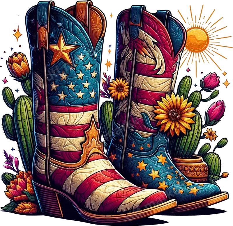 Patriotic American Flag Cowboy Boots DTF Transfer | Western Desert Design