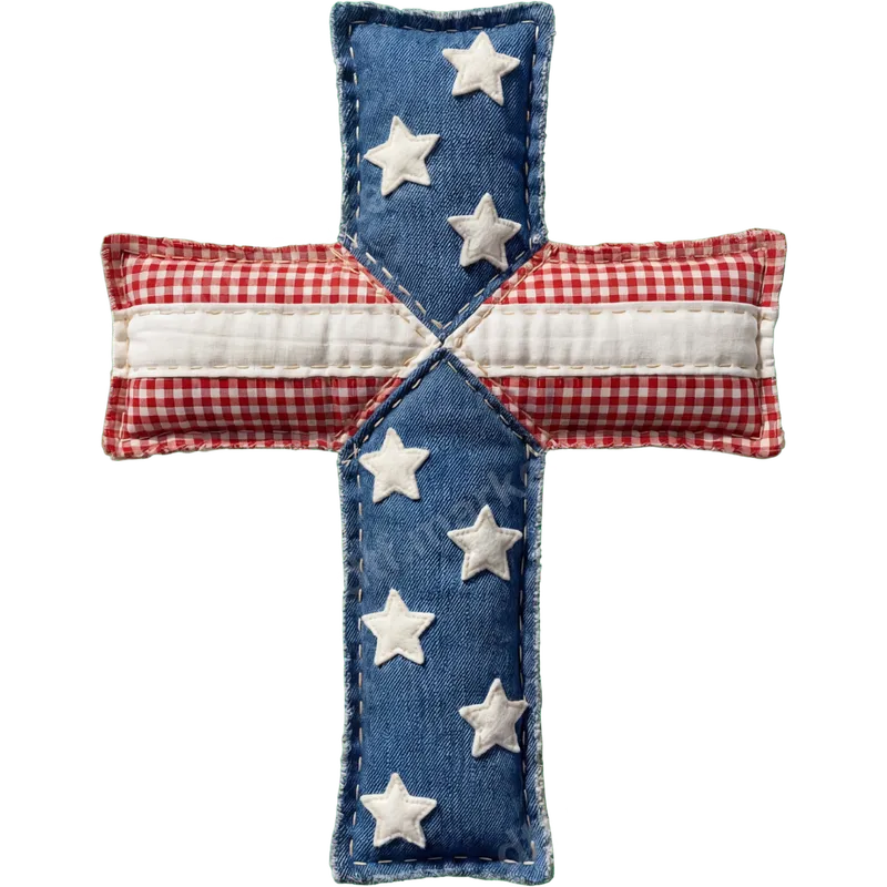 Patriotic American Flag Quilted Cross DTF Transfer