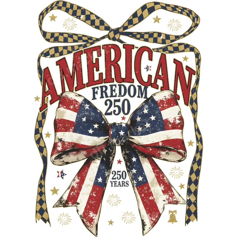 Patriotic American Freedom 250 Years DTF Transfer Flag Bow Design