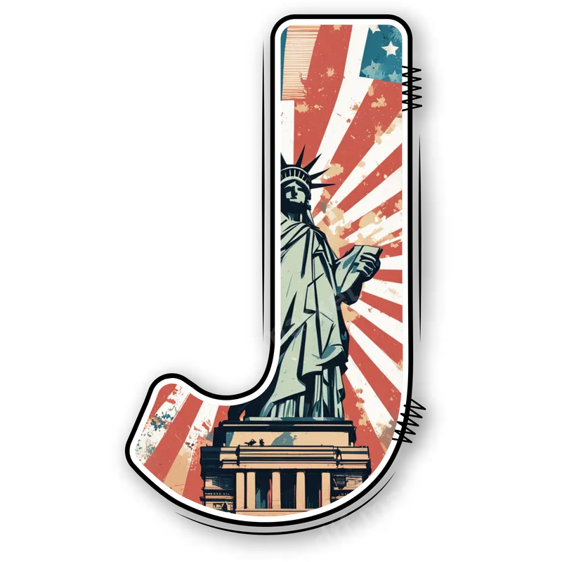 Patriotic Americana J Letter DTF Transfer | Statue of Liberty Design