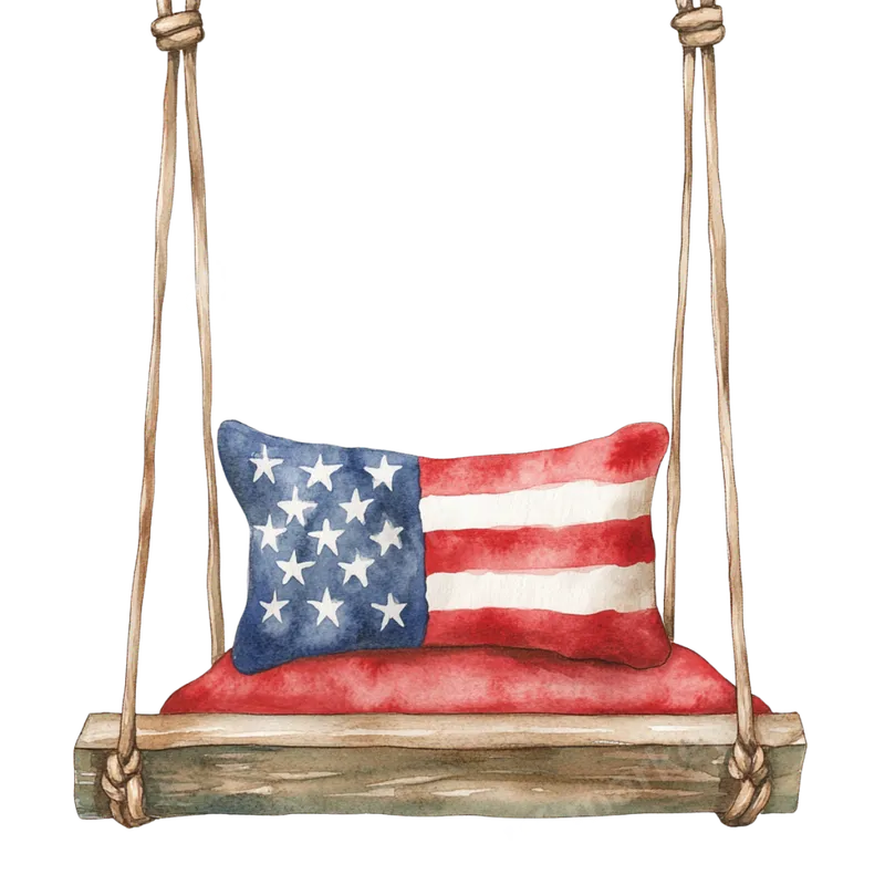 See allThis charming watercolor DTF transfer features a rustic wooden swing adorned with a cozy red cushion and an American flag-patterned pillow. The design evokes a sense of nostalgic Americana, perfect for celebrating national holidays or showcasing everyday patriotism. This beautiful ready to press design captures the soft, inviting feel of a classic watercolor painting, making it a unique addition to any garment or accessory. This heat transfer is ideal for anyone who loves American heritage, rustic aesthetics, or country-style decor. It makes a thoughtful gift for veterans, military families, history buffs, or crafters looking to create custom apparel. Perfect for Memorial Day, the 4th of July, Veterans Day, or simply adding a touch of patriotic flair to your wardrobe or home goods throughout the year. Our high-quality DTF transfers are incredibly versatile and work seamlessly on cotton, polyester, and most fabric blends. Application is a breeze with a heat press (recommended 280-300°F for 6-10 seconds with medium pressure and an instant peel) or even a household iron for smaller designs. There's no weeding required, making this an easy iron on transfer application for both beginners and experienced crafters. Experience exceptional quality with our professional DTF film, designed to deliver vibrant colors that stand out. This durable heat press design is crack-resistant, soft to the touch, and features a strong adhesive for long-lasting wear. Create custom t-shirts, sweatshirts, tote bags, and more with a finish that feels premium and looks fantastic.