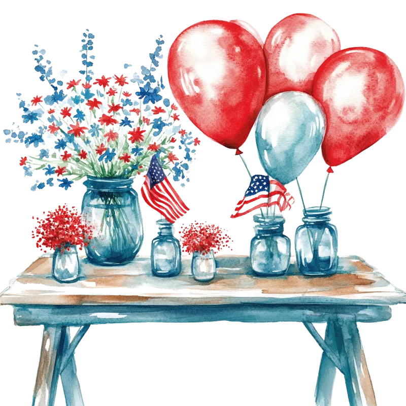 Patriotic Americana Watercolor Table | 4th of July Celebration DTF Transfer