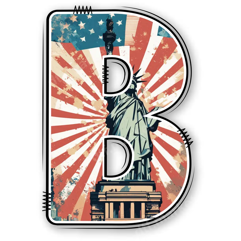 Patriotic B Letter DTF Transfer | Statue of Liberty & American Flag