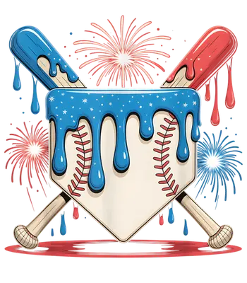 Patriotic Baseball Home Plate DTF Transfer with Bats & Fireworks