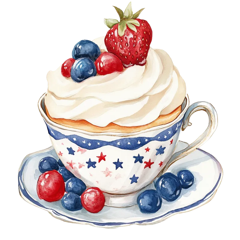 Patriotic Berry Teacup Cupcake DTF Transfer | 4th of July Dessert Ready to Press