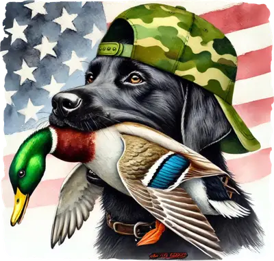 Patriotic Black Lab Duck Hunter DTF Transfer with Camo Hat