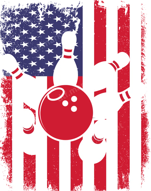 Patriotic Bowling Pins & Ball DTF Transfer | Distressed American Flag