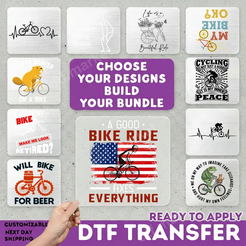 See allEmbrace your love for cycling and country with our 'A Good Bike Ride Fixes Everything' DTF transfer. This bold design features a cyclist against a distressed American flag, symbolizing freedom and the joy of the open road. It's perfect for anyone who finds peace on two wheels. This premium direct to film transfer is ready to press, making custom apparel creation quick and effortless. This patriotic heat transfer is ideal for avid cyclists, bike enthusiasts, and veterans who embrace an active, American lifestyle. It's an excellent gift for Father's Day, birthdays, retirement, or for cycling events. Create custom t-shirts, hoodies, and jackets for races, 4th of July, or to show year-round pride. This versatile iron on design resonates deeply with a strong community. Applying this heat press ready design is straightforward for professionals and home crafters. It adheres beautifully to cotton, polyester, and most blends. For optimal results, use a heat press at 300-325°F for 15 seconds with medium pressure, then cold peel. A household iron can also work with firm, even pressure. Unlike vinyl transfers, no weeding is required, saving significant time. Experience professional-grade quality with every dtf.market apparel transfer. Our direct to film transfers boast vibrant colors and exceptional durability. Designs are crack-resistant, peel-resistant, and feature a soft, lightweight feel that integrates seamlessly with fabric. Printed on high-quality DTF film with strong adhesive, your custom shirt design will maintain integrity and vividness, ensuring a long-lasting garment.