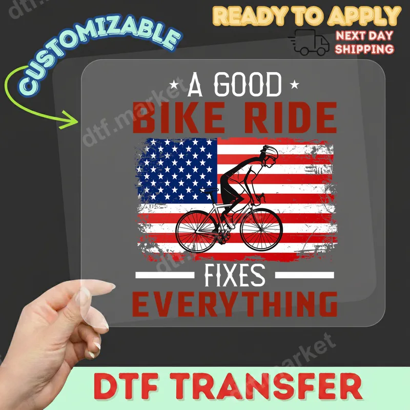 Patriotic Cycling DTF Transfer | Bike Ride Fixes Everything American Flag