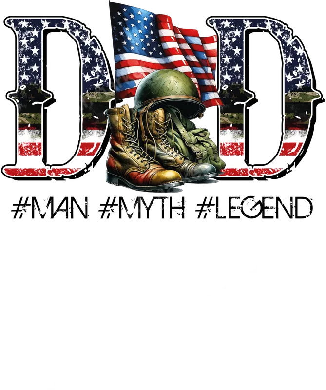 See allShow your appreciation for the legendary dad in your life with this powerful DTF transfer featuring the word "DAD" in a distressed, patriotic design. The American flag beautifully waves, accompanied by an army helmet and military boots, embodying service and strength. Below, the bold hashtags "#MAN #MYTH #LEGEND" declare his esteemed status. This high-quality DTF transfer arrives as a ready to press graphic, perfect for celebrating the heroes in our lives. This robust design is ideal for military fathers, veterans, active service members, and any dad who embodies true patriotism and strength. It makes an exceptional gift for occasions like Father's Day, Memorial Day, Veterans Day, or the 4th of July. Create personalized apparel for family gatherings, patriotic events, or as a heartfelt birthday present for the man who's truly a legend. Our heat transfer designs are incredibly versatile and easy to apply to almost any fabric type, including 100% cotton, polyester, cotton/poly blends, and more. Simply use a heat press at 300-325°F for 15 seconds with medium pressure, then give a cold peel. No more tedious weeding like with traditional vinyl transfer projects; just press and go! For home crafters, a household iron can also be used with care. Each apparel transfer is produced using professional-grade DTF film and inks, ensuring vivid colors and exceptional durability. The result is a vibrant, crack-resistant, and soft-to-the-touch finish that stands up to countless washes. Elevate your custom t-shirt transfer game with dtf.market’s premium, long-lasting designs.