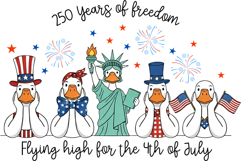 Patriotic Ducks 4th of July DTF Transfer | 250 Years of Freedom Design