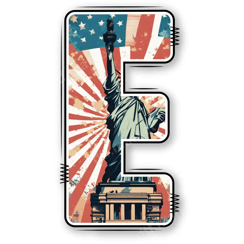 Patriotic E Letter DTF Transfer | Statue of Liberty & American Flag Design