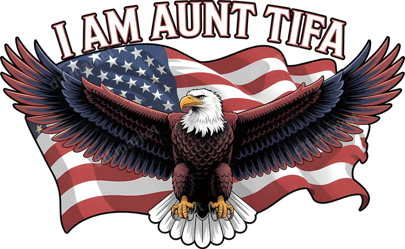 See allThis bold DTF transfer features a majestic bald eagle with wide-spread wings, set against a distressed American flag backdrop. Above this powerful imagery, the phrase "I AM AUNT TIFA" is prominently displayed in a strong, arched font, blending patriotic symbolism with a distinctive, often humorous, political statement. This high-quality, ready to press design delivers vibrant colors and sharp details, perfect for making a clear statement on any garment. Ideal for patriots, individuals with a strong political stance, or anyone who appreciates a touch of defiant humor. This design is perfect for rallies, Fourth of July celebrations, Memorial Day events, or as a unique gift for a politically active friend or family member. It’s an excellent choice for showing off your convictions with a memorable and eye-catching graphic. Applying this apparel transfer is straightforward and hassle-free. It works perfectly on a wide range of materials including cotton, polyester, and various fabric blends. For best results, use a heat press at 300-325°F for 15 seconds with medium pressure. Alternatively, a household iron can be used for smaller applications, ensuring even heat. There's absolutely no weeding required, making your customization process quick and efficient. Our direct to film transfers are crafted using professional-grade DTF film and inks, ensuring exceptional durability and a premium finish. Enjoy rich, vibrant colors that resist cracking and peeling, maintaining their integrity wash after wash. The finished heat press design is incredibly soft to the touch, seamlessly integrating into your fabric without a thick, heavy feel, providing a professional look every time.